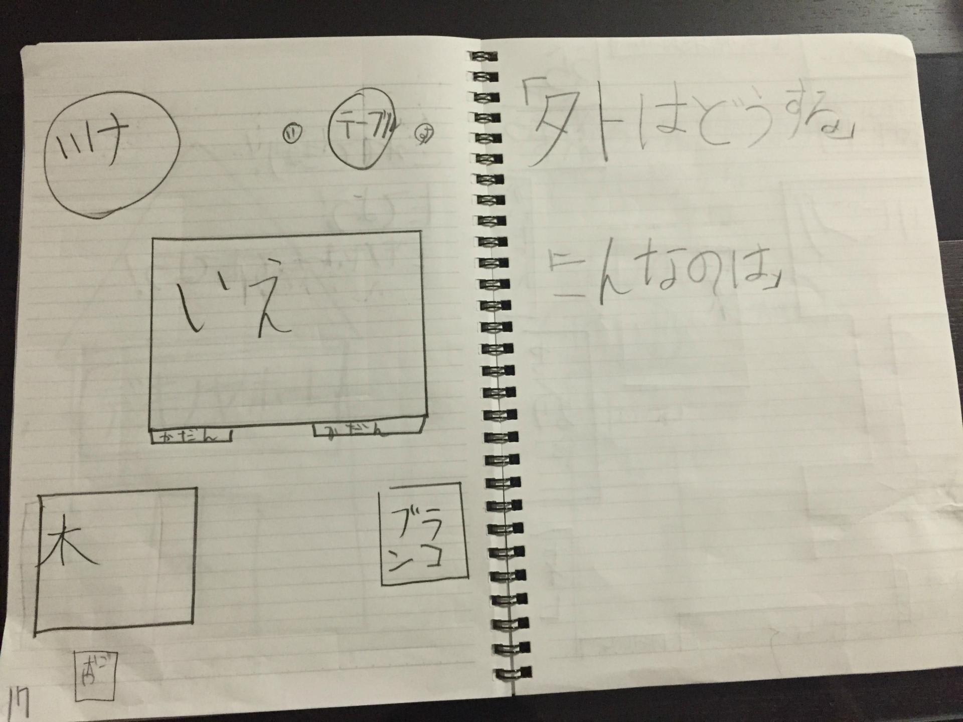 もちろん勉強ではないだろうと思って、聞いてみると、絵本版『未来予想図』をノートに書いていました。