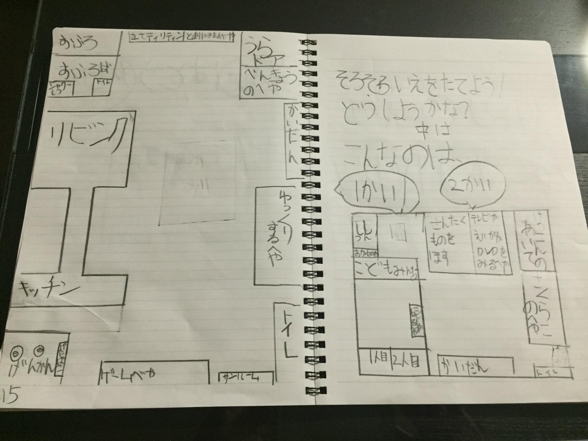 先日、帰宅した時に何を書いているのかマジマジ見ると、「家の間取り」が書いてあるじゃないですか!