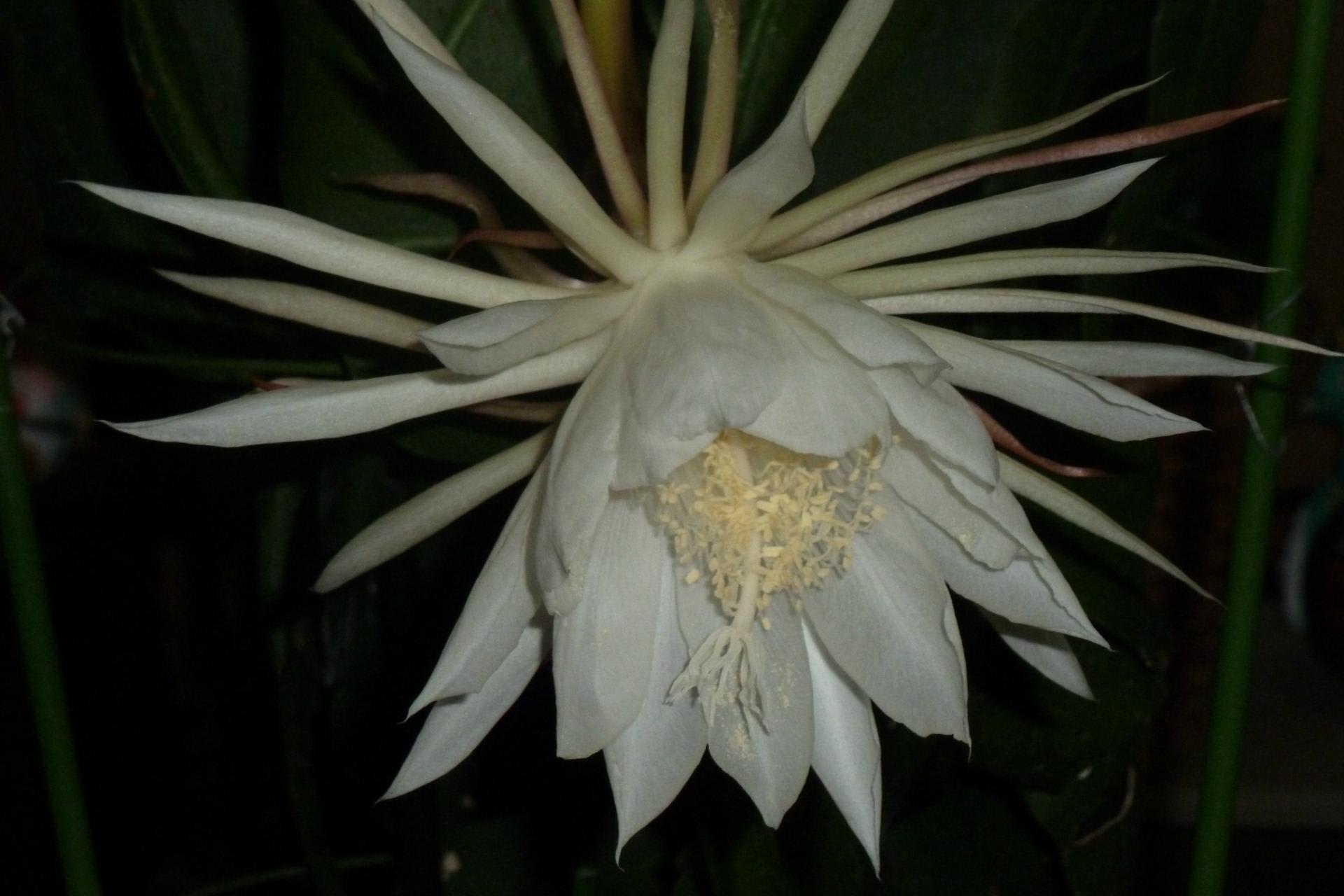 その代わりといってはなんですが、香りが強く(私にはあまり好ましいとは言えません)一夜のうちにコウモリ等を呼び寄せて受粉をさせるようです。