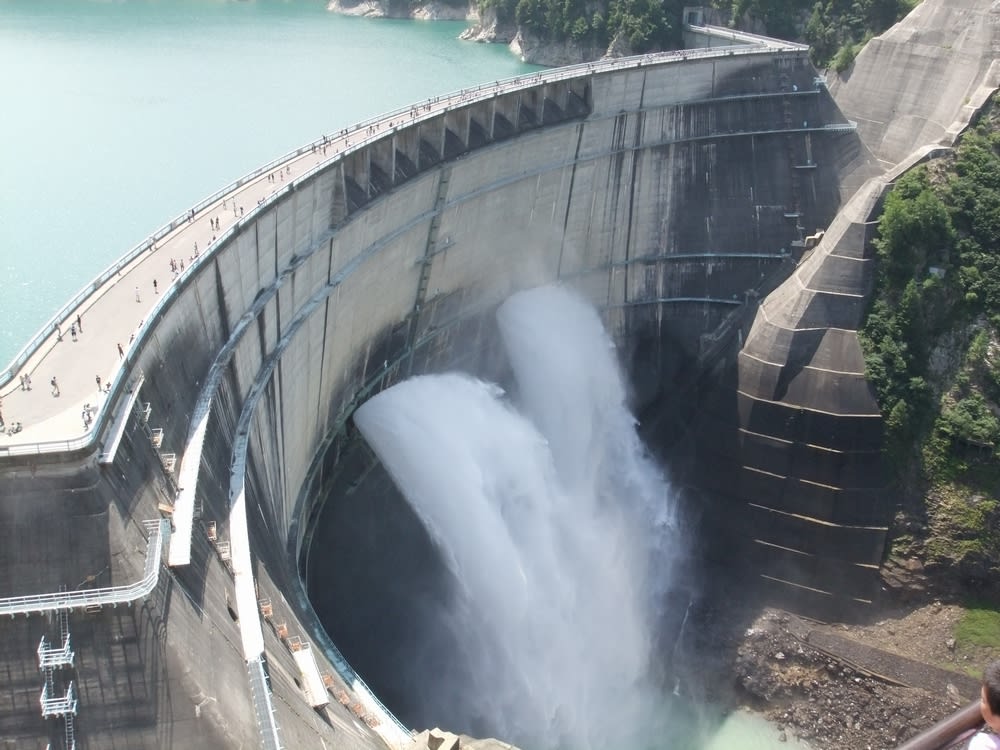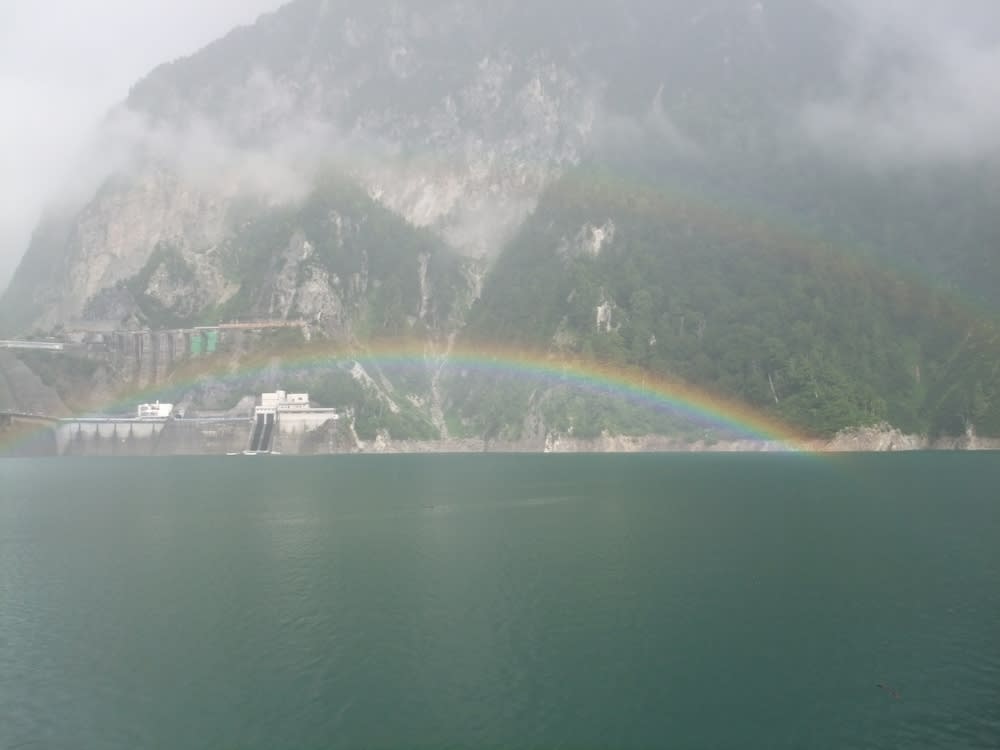 観光のメダマになっているダム放水を見学、最後に黒部湖