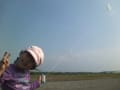すぐに飽きてきて、ママに凧を持たせて違う遊びをしまいましたが・・・。