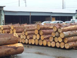 さて、写真は先日原木の市場に行ってきたときのものです。杉・桧が主ですね。