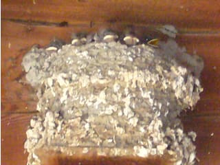 当社の製材工場にツバメの巣があるのを発見!