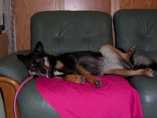 冬の間は室内犬となるのですが、ソファーの上がお気に入りでご覧のように