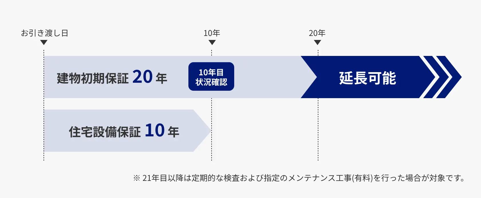 当社は、高品質住宅だからこそ実現できる長期保証で、住まいと暮らしをサポートいたします。